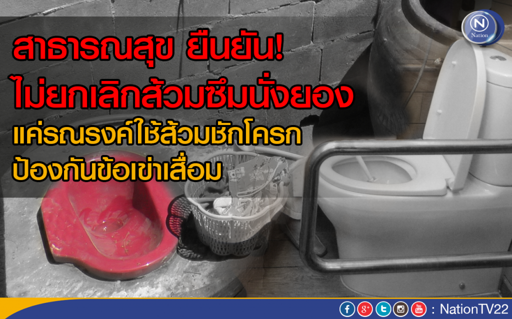 อธิบดีกรมอนามัย นายแพทย์วชิระ เพ็งจันทร์ บอกว่า กรณีมีสื่อนำเสนอข้อมูลเรื่องพระราชกฤษฎีกา ที่ต้องเปลี่ยนจากส้วมซึมนั่งยองเป็นโถส้วมนั่งราบหรือส้วมชักโครก ทำให้ต้องยกเลิกการใช้ส้วมนั่งยองนั้น กระทรวงสาธารณสุขได้ตรวจสอบข้อเท็จจริงพบว่า พระราชกฤษฎีกาดังกล่าวคือ พระราชกฤษฎีกากำหนดให้ผลิตภัณฑ์อุตสาหกรรมเครื่องสุขภัณฑ์เซรามิก : โถส้วมนั่งราบต้องเป็นไปตามมาตรฐาน พ.ศ. 2556 โดยมาตรา 3 ระบุ ผลิตภัณฑ์อุตสาหกรรมเครื่องสุขภัณฑ์เซรามิก : โถส้วมนั่งราบต้องเป็นไปตามมาตรฐาน เลขที่ มอก.792 - 2554 ตามประกาศกระทรวงอุตสาหกรรม ฉบับที่ 4380 (พ.ศ. 2554)