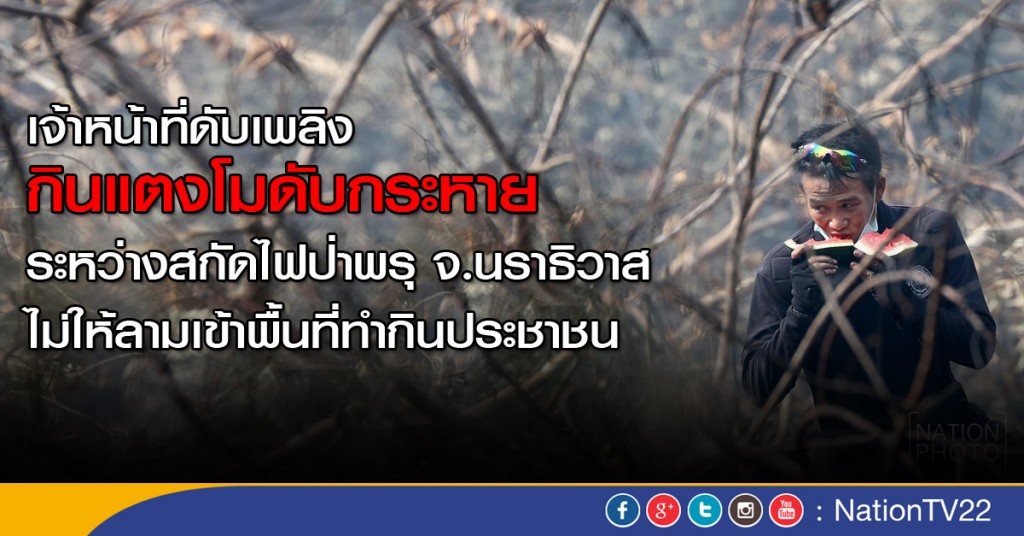 เจ้าหน้าที่ดับเพลิงกินแตงโมดับกระหาย ระหว่างสกัดไฟป่าพรุ
