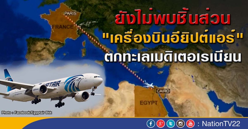 เครื่องบินและเรือหลายลำจากอียิปต์ กรีซและฝรั่งเศส ร่วมตระเวนค้นหาเครื่องบินแอร์บัสเอ 320 ของสายการบินอียิปต์แอร์ เที่ยวบิน MS804 ในบริเวณที่เชื่อว่าเป็นจุดที่เครื่องบินตกลงในทะเลเมดิเตอเรเนียน ขณะเดินทางจากกรุงปารีสของฝรั่งเศสไปยังกรุงไคโรของอียิปต์เมื่อวันพฤหัสบดี