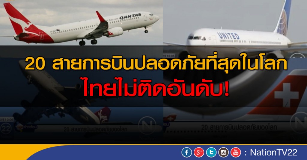 เว็บไซต์แอร์ไลเนอร์เรตติ้ง ของออสเตรเลีย ที่จัดอันดับและรวบรวมข้อมูลด้านสายการบินทั่วโลก เผยแพร่ผลประเมินความปลอดภัยของสายการบินต่างๆ กว่า 400 แห่ง แต่ไม่รวมสายการบินประหยัด พบว่า สายการบิน 20 แห่ง ที่มีคะแนนด้านความปลอดภัยสูงสุดมาจากทวีปยุโรป อเมริกาเหนือ ตะวันออกกลาง และเอเชียแปซิฟิก