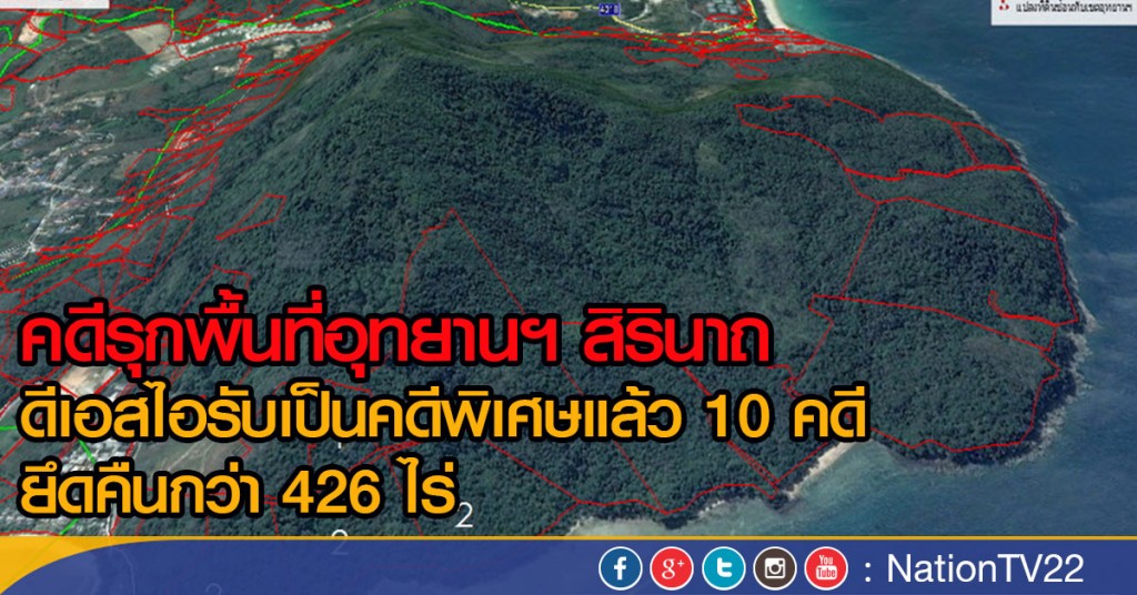 ด้านพ.ต.ท.ประวุธ วงศ์สีนิล ผู้บัญชาการสำนักคุ้มครองผู้บริโภคและสิ่งแวดล้อม กล่าวว่า ในส่วนของกรมสอบสวนคดีพิเศษ ขณะนี้ได้รับกรณีการบุกรุกอุทยานแห่งชาติสิรินาถเป็นคดีพิเศษแล้ว จำนวน10ราย82แปลง ดังนี้1.บริษัท ทรีดอลฟินซ์ จำกัด (โรงแรมตรีสรา) จำนวน11แปลง เนื้อที่164-2-14ไร่ คดีพิเศษที่18/2558 , 2.บริษัท เดอะอันดามันไพรเวท จำกัด จำนวน8แปลง เนื้อที่94-1-16.5ไร่ คดีพิเศษที่82/2558 , 3.แปลงที่ดินของนายอนุภาพ เวชวนิชสนอง จำนวน1แปลง เนื้อที่7-0-03.6ไร่ คดีพิเศษที่44/2558 ,4.แปลงที่ดินของนางชมชนก สุธัมมา และนายสุรชัย เหล่าสายเชื้อ จำนวน2แปลง เนื้อที่93-3-26.7ไร่ คดีพิเศษที่19/2558 , 5.โครงการ ภูเก็ตเพนนินซูล่า สปาแอนด์รีสอร์ท จำนวน3แปลง เนื้อที่5-2-30ไร่ คดีพิเศษที่45/2558 ,6.บริษัท พินนาเคิล เคป จำกัด จำนวน2แปลง เนื้อที่85-2-59.3ไร่ คดีพิเศษที่20/2558 7.บริษัท ภูเก็ต อะเคเดีย จำกัด (บริษัท แฟร์ แอนด์ เฟิร์ม จำกัด หรือโรงแรมพูลแมน) จำนวน8แปลง เนื้อที่60-0-03ไร่ คดีพิเศษที่102/2558 ,8.บริษัท เดอะอันดามันไวท์บีช จำกัด จำนวน2แปลง เนื้อที่6-0-47.9ไร่ คดีพิเศษที่145/2558 ,9เอกสารสิทธิที่ดินในพื้นที่ ต.สาคู อ.ถลาง จำนวน12แปลง คดีพิเศษที่9/2559และ10.บริษัท เซลทรัลแอนซิตี้ ดิเวลลอปเม้น จำกัด จำนวน33แปลง คดีพิเศษที่18/2559