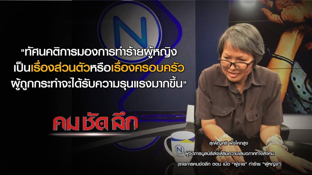 สุเพ็ญศรี พึ่งโคกสูง ผู้จัดการมูลนิธิส่งเสริมความเสมอภาคทางสังคม กล่าวว่า จากที่เห็นคลิป เห็นว่า ฝ่ายหญิงอดทนต่อการถูกทำร้ายหลายคนตั้งข้อสงสัยว่า ถ้าพบเห็นลักษณะนี้จะช่วยเหลืออย่างไร