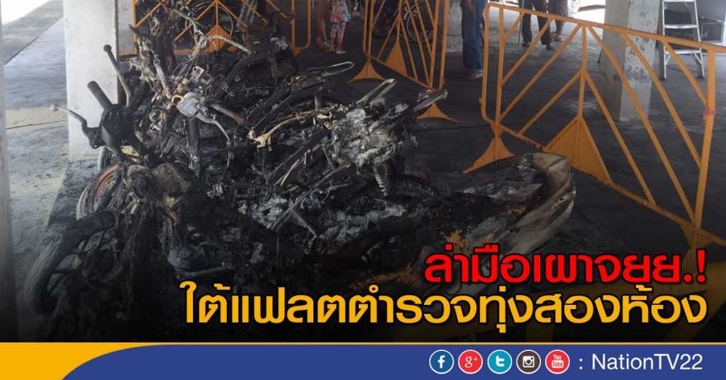 ที่เกิดเหตุบริเวณใต้ถุนแฟลตตำรวจส่วนกลางทุ่งสองห้อง อาคาร 5 ซอยวิภาวดีรังสิต 27 ถนนวิภาวดีรังสิต เจ้าหน้าที่พบเพลิงลุกไหม้รถจักรยานยนต์ไปทั้งคัน เหลือเพียงซากของรถจำนวนทั้งสิ้น 6 คัน ได้แก่ รถจักรยานยนต์ ยี่ห้อฮอนด้า คลิก สีขาว ทะเบียนตราโล่ 93829, รถจักรยานยนต์ ยี่ห้อฮอนด้า ทะเบียน 2กธ1454 กทม., รถจักรยานยนต์ ยี่ห้อยามาฮ่า สีดำแดง ทะเบียน ววม538 กทม., รถจักรยานยนต์ ยี่ห้อฮอนด้า รุ่นเอ็มเอสเอ็กซ์ สีดำ ทะเบียน 4กด1016 กทม., รถจักรยานยนต์ ยี่ห้อฮอนด้า สีน้ำตาล ทะเบียน 3กท4065 กทม.และ รถจักรยานยนต์ ยี่ห้อฮอนด้า สีชมพู ทะเบียน 3กพ4836 กทม. นอกจากนี้ยังมีรถจักรยานยนต์อีก 3 คันได้รับความเสียหายบังโคลนด้านหน้า