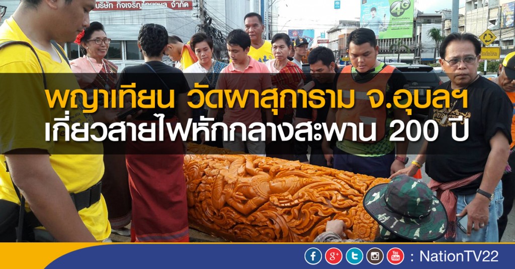 เมื่อเวลา 17.00 น. วันที่ 19 ก.ค.59 กองอำนวยการประเพณีแห่เทียนเข้าพรรษา จังหวัดอุบลราชธานี รับแจ้งจากเจ้าหน้าประจำขบวนวัดผาสุการามว่า เกิดอุบัติเหตุขบวนเทียนพรรษาเกี่ยวสายไฟที่ห้อยต่ำลงมาจนหัก บริเวณเชิงสะพาน เสรีประชาธิปไตย ถนนอุปราช ต.ในเมือง อ.เมืองอุบลราชธานี จนพญาเทียนหักลงมาได้รับความเสียหาย