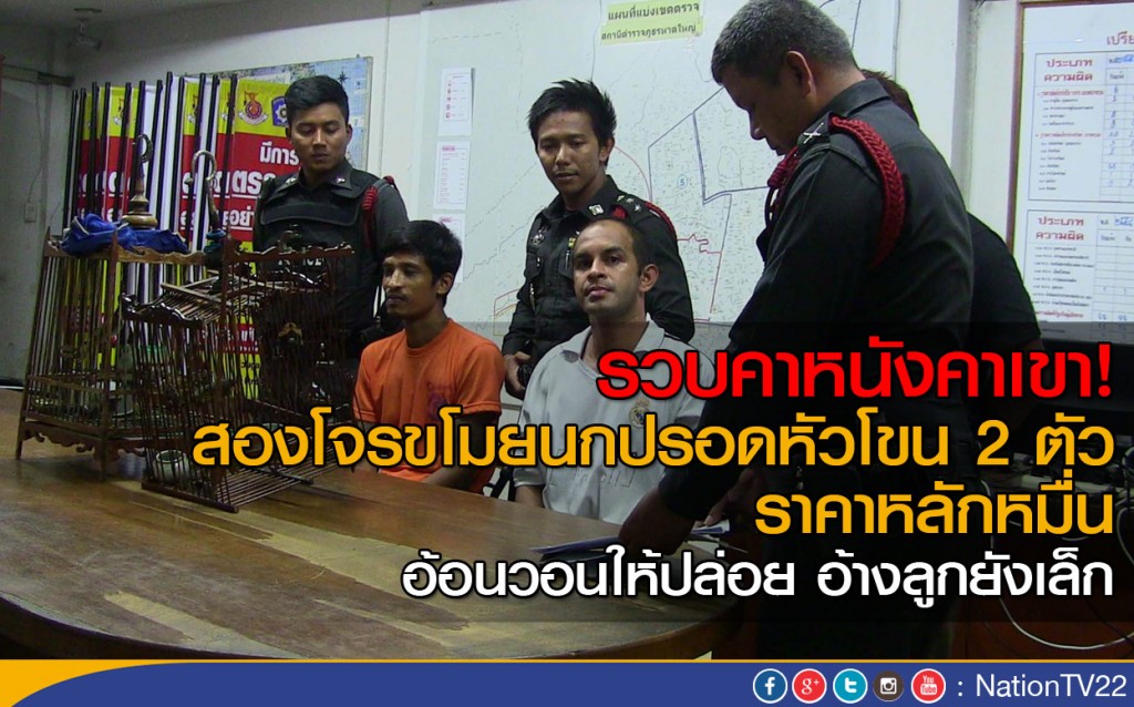 เมื่อเวลา 02.00 น.วันที่ 2 สิงหาคม 2559 ตำรวจงานป้องกันปราบปราม สภ.หาดใหญ่ จ.สงขลา นำโดย ร.ต.อ.กัมปนาท แคยิหวา รองสวป.สภ.หาดใหญ่ จับกุม นายศรายุทธ์ อินต๊ะใจ อายุ 33 ปี (เสื้อขาว) และนายสรายุทธ อินชุม อายุ 27ปี (เสื้อสีส้ม) สองโจรที่ก่อเหตุขโมยนกปรอดหัวโขนหรือนกกรงหัวจุกได้คาหนังคาเขาพร้อมนกกรงหัวจุก 2 ตัว