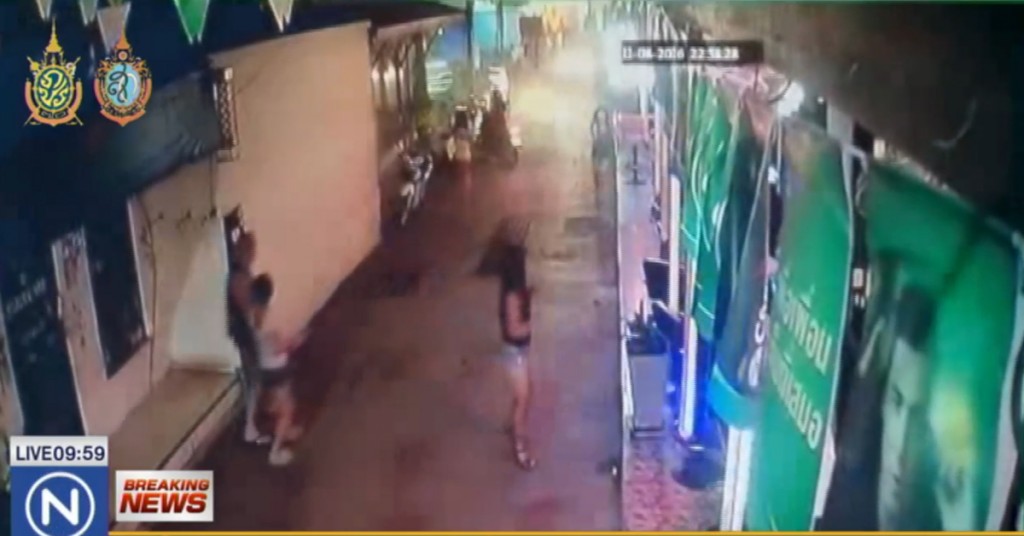 สำหรับชายต่างชาติที่ว่านี้ไม่เคยเห็นหน้ามาก่อน เมื่อทั้งคู่ขับรถจักรยานยนต์ออกไปได้ไม่นานก็เกิดเหตุระเบิดดังสนั่นขึ้นที่หน้าร้านที่ตนนั่งอยู่ ทำให้ตนได้รับบาดเจ็บ ถูกสะเก็ดระเบิดที่น่องด้านซ้าย แต่โชคดีที่บาดเจ็บเพียงเล็กน้อยเท่านั้น ก่อนจะตั้งสติรีบโทรแจ้งเจ้าหน้าที่ตำรวจมาตรวจสอบ