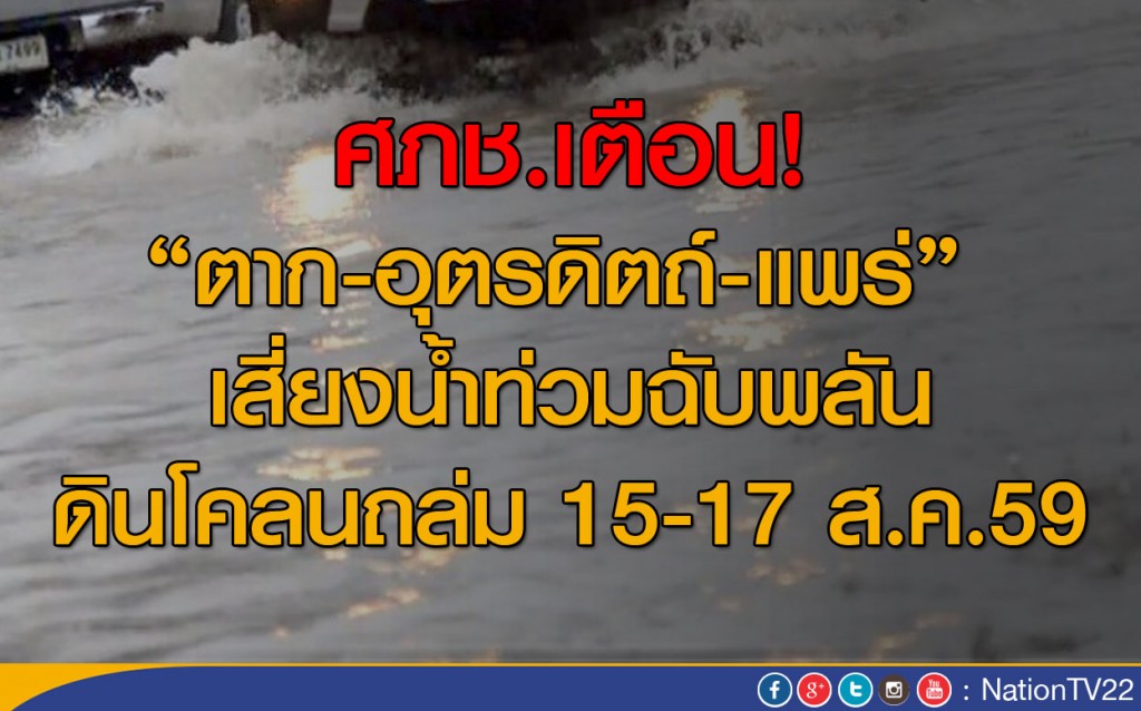 ศภช.เตือน"ตาก-อุตรดิตถ์-แพร่" เสี่ยงน้ำท่วมฉับพลัน ดินโคลนถล่ม 15-17 ส.ค.นี้