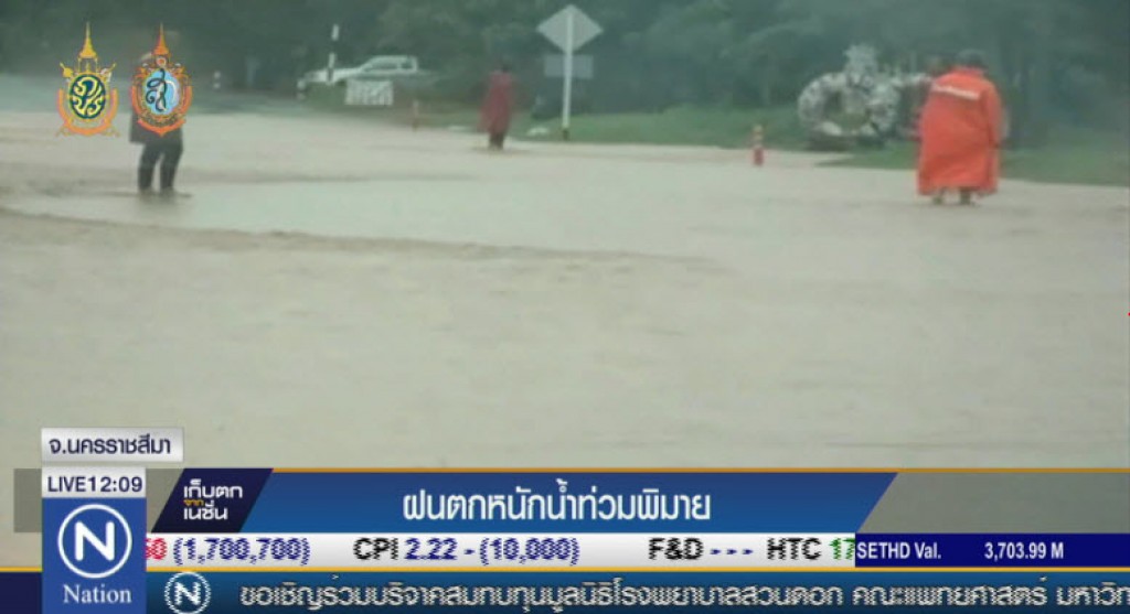 ฝนที่ตกลงมาอย่างหนักตลอดทั้งคืนที่ผ่านมา ส่งผลให้เกิดมีน้ำป่าไหลหลากจากพื้นที่บ้านหนองโทน ต.นิคม อ.พิมาย ได้ไหลเข้าท่วมถนนสาย พิมาย-ชุมพวง บริเวณหลักกิโลเมตร ที่ 7 - 8 ด้านหน้าโรงเรียนพิมายดำรงวิทยาคม บ้านพุทรา ต.รังกาใหญ่ อ.พิมาย จ.นครราชสีมา โดยปริมาณน้ำท่วมสูงกว่า 50 ซ.ม. ทำให้ประชาชนที่สัญจรไปมาในเส้นทางดังกล่าวนั้นได้รับความเดือดร้อนจากปริมาณน้ำที่ท่วมสูงและกระแสน้ำที่ไหลค่อนข้างแรง นอกจากนั้นน้ำป่าที่ไหลทะลักลงมายังได้ไหลเข้าท่วมบ้านเรือนประชาชนในพื้นที่บ้านตะปัน และบ้านรักใหญ่ มีระดับสูงกว่า 30 เซนติเมตร เดือดร้อนกว่า 50 หลังคาเรือน รวมไปถึงวัดภายในชุมชน