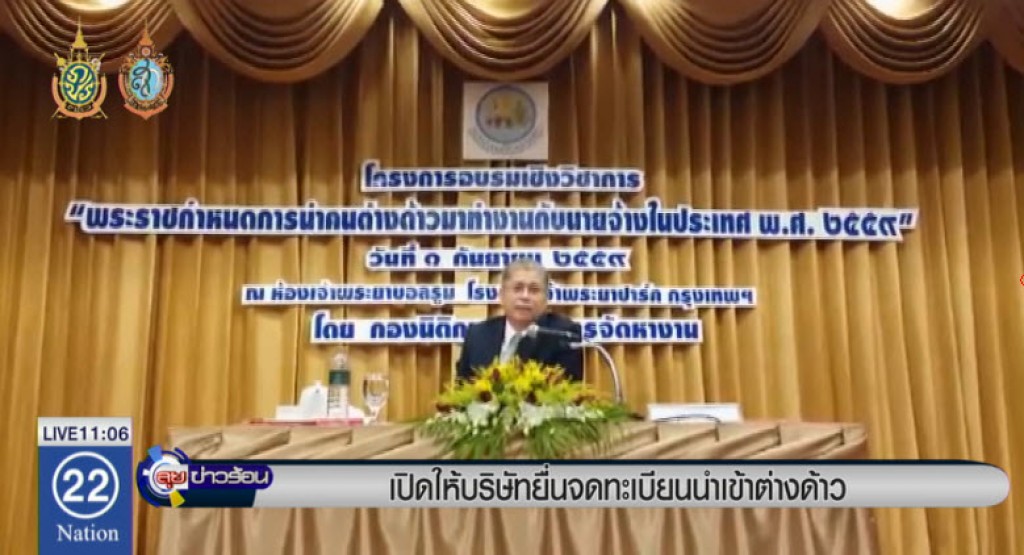 นายอารักษ์ พรหมณี (พรม-มะ-นี) อธิบดีกรมการจัดหางาน(กกจ.) บอกว่า พระราชกำหนดการนำคนต่างด้าวมาทำงานกับนายจ้างในประเทศไทยพ.ศ.2559 มีผลบังคับใช้ตั้งแต่ 16 ส.ค. โดยกำหนดให้บริษัทจัดหางานภายในประเทศที่จดทะเบียนกับกกจ. และขอนำเข้าแรงงานต่างด้าว 400 แห่งต้องมาจดทะเบียนเป็นบริษัทนำเข้าแรงงานต่างด้าวภายใน 60 วันนับตั้งแต่ 16 ส.ค.ถึง 15 ต.ค.นี้ โดยบริษัทต้องยื่นขออนุญาตและวางเงินหลักประกันไม่น้อยกว่า 5 ล้านบาท ส่วนนายจ้างที่ยื่นขออนุญาตนำเข้าวางเงินหลักประกัน 1 พันบาทต่อการจ้างแรงงานต่างด้าว 1 คน แต่ไม่เกิน 99 คน หากนำเข้าตั้งแต่ 100 คน ต้องวางเงินหลักประกันไม่เกิน 1 แสนบาท