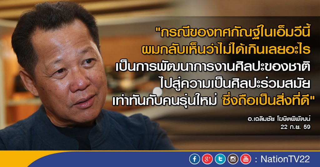 "อ.เฉลิมชัย" ศิลปินแห่งชาติ เปิดมุมมองแมนๆ เอ็มวี "ท่องเที่ยวไทยมีเฮ" ไม่เกินเลยหรือทำให้ "ทศกัณฐ์"เสื่อมเสีย แต่หากคิดอนุรักษ์กันอย่างเดียวแล้วจะพัฒนาได้อย่างไร