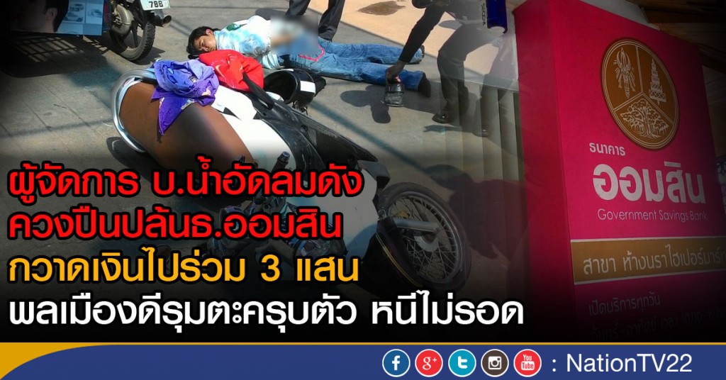 พ.ต.ท.อุทัย วงศ์คำแสน รอง ผกก.ภ.จว.น่าน กล่าวว่า นายณฤทธิ์ อามาตยศักดิ์ ผู้จัดร้านอาหาร จ.จันทร์เพ็ญ และผู้จัดการบริษัทไทยน้ำทิพย์ สาขาน่าน ถ.สวนตาล อ.เมือง จ.น่าน อายุ 40 ปี อยู่บ้านเลขที่ 8 หมู่ 4 ต.ม่วงตึ๊ด อ.ภูเพียง จ.น่าน อาวุธปืนไทยประดิษฐ์สั้น .22 หลังจากก่อนก่อเหตุได้มาดูลาดเราได้ 3 วัน จนวันนี้ 3 ต.ค. เมื่อเวลา 13.15 น. ผู้ก่อเหตุสวมเสื้อผ้าร่มสีขาวหมวกกันน็อคสีดำขาว ควงปืนบุกเดี่ยวเข้าเคาร์เตอร์ธนาคารออมสิน สาขาห้างนราไฮเปอร์มาท ให้ปืนบังคับให้เจ้าหน้าที่ธนาคารเปิดลิ้นชักแล้วตัวเองได้เก็บเงินและลวงเงินใส่ถุงผ้าร่มส่แดงที่เตรียมมา โดยใช้เวลาชิงทรัพย์ไม่ถึง 1 นาที จากนั้นได้หนีออกไปทางประตูธนาคาร โดยใช้มอเตอร์ไซค์ ยี่ห้อ ยามาฮ่า ฟีโน่ นำสติกเกอร์สีขาวติดอำพรางรถและป้ายทะเบียน วตจ กรุงเทพมหานคร 657 เตรียมหลบหนี แต่ถูกประชาชนช่วยกันจับไว้ได้ พร้อมเงินที่ปล้น เงิน 295,500 บาท บาท และปืนได้