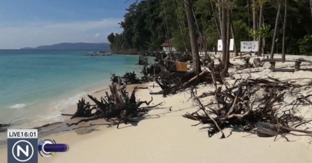 แต่อีกฝั่งของเกาะ คลื่นได้พัดพาทรายมาทำให้เกิดชายหาดในพื้นที่ ความยาวประมาณ 200 เมตร กว้างประมาณ 300 เมตร อย่างไรก็ตามเตรียมประสานหน่วยที่เกี่ยวข้อง เพื่อหาแนวทางป้องกันปัญหาคลื่นกัดเซาะชายฝั่ง ในพื้นที่ท่องเที่ยวทางทะเลอีกหลายจุด