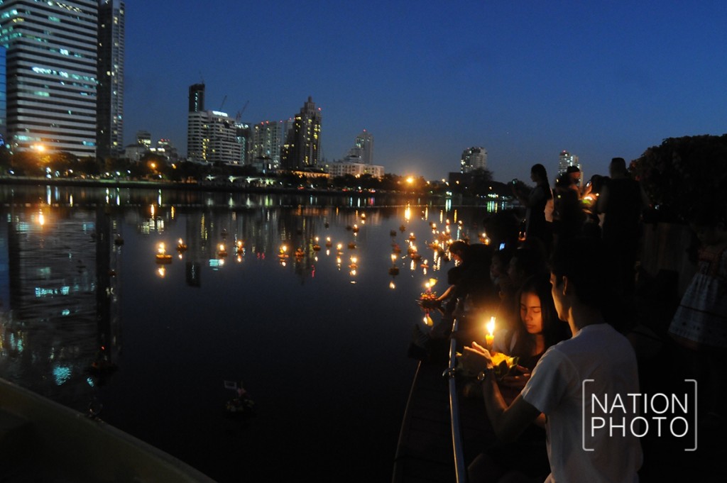 ชาวไทยและชาวต่างชาติ ร่วมลอยกระทงที่สวนเบญจกิติ