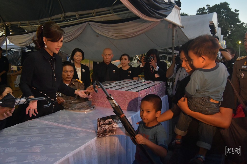 ทั้งนี้ ผู้สื่อข่าวรายงานว่า ทันทีที่เสด็จถึงทรงโบกพระหัตถ์ทักทายประชาชนที่มาเข้าแถวรอรับของพระราชทานอย่างเป็นระเบียบเรียบร้อย โดยประชาชนที่เฝ้ารอต่างพร้อมใจกันเปล่งเสียง "ทรงพระเจริญ" และเมื่อพระราชทานพระบรมฉายาลักษณ์พระปรมินทรมหาภูมิพลอดุลยเดช แล้วเสร็จ ทรงฉายพระรูปร่วมกับทีมงานพร้อมทั้งพระราชทานพระบรมฉายาลักษณ์ฯ ดังกล่าวเป็นที่ระลึกแก่ทีมงานที่มาช่วยแจกของ สร้างความปลื้มปีติอย่างหาที่สุดมิได้