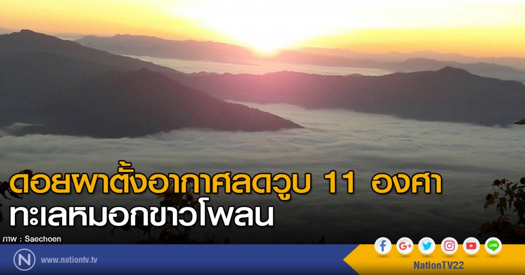 เมื่อเวลา 06.00 น. วันที่ 21 พ.ย. ผู้สื่อข่าวรายงานว่า ด้วยอุณภูมิที่ลดลงอย่างต่อเนื่องในภาคเหนือ ทำให้บริเวณยอดดอยผาตั้ง ต.ปอ อ.เวียงแก่น จ.เชียงราย ซึ่งเป็นอีกหนึ่งยอดดอยที่นักท่องเที่ยวให้ความสนใจ เพื่อขึ้นไปสัมผัสบรรยากาศหนาวและชมความสวยงามของธรรมชาติ โดยเฉพาะทะเลหมอก ด้วยอุณหภูมิเฉลี่ย 11 องศาเซลเซียสเท่านั้น ประกอบกับรับชมพระอาทิตย์ขึ้นเหนือทะเลหมอก สร้างความประทับใจให้แก่นักท่องเที่ยวได้เป็นอย่างดี