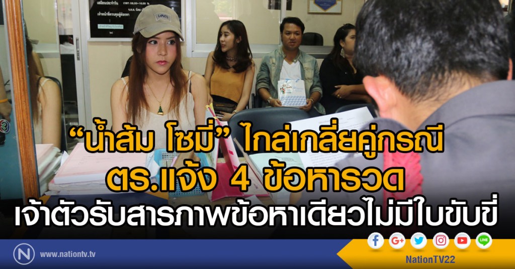 เบื้องต้นเจ้าหน้าที่ได้แจ้ง 4 ข้อกล่าวหาคือ 1. ขับรถโดยประมาทเป็นเหตุให้ทรัพย์สินของผู้อื่นเสียหายและมีผู้บาดเจ็บ 2. ขับรถโดยไม่มีใบอนุญาตขับขี่ 3. ขับรถโดยไม่คำนึงถึงความปลอดภัยของผู้อื่น 4. เป็นผู้ขับขี่รถขณะมีสารเสพติดประเภท 1 (เมทแอมเฟตตามีน) ภายในร่างกายโดยผิดกฎหมาย