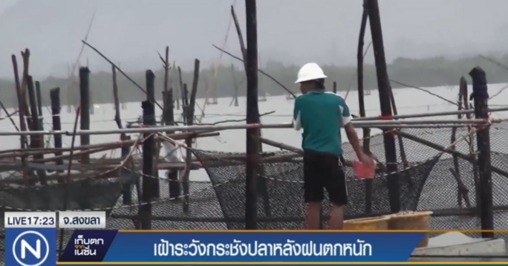 เกษตรกรผู้เลี้ยงปลากะพงขาวในกระชัง ที่ ต.เกาะยอ อ.เมือง จ.สงขลา ซึ่งเป็นแหล่งเลี้ยงปลากะพงขาวที่ใหญ่ที่สุดใน จ.สงขลา ได้เฝ้าระวังกระชังเลี้ยงปลากะพงขาวอย่างใกล้ชิด รวมทั้งคอยตรวจดูสีน้ำบริเวณโดยรอบเกาะยอว่ามีสีขุ่นหรือไม่ เพราะมีผลต่อการกินอาหารของปลากะพงขาวด้วย เนื่องจากเมื่อฝนตกหนักจะมีน้ำไหลหลากจากลำคลองที่อยู่โดยรอบลงสู่ทะเลสาบสงขลาเป็นจำนวนมาก ทำให้ระดับน้ำบริเวณเกาะยอมีระดับสูงขึ้นและจะมีสีขุ่นแดง