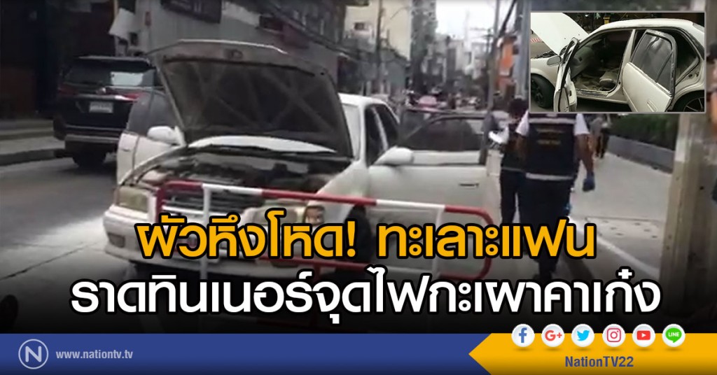 สอบถามพยานที่เห็นเหตุการณ์ กล่าวว่า ทั้งคู่ทะเลาะกันตั้งแต่ประตูทางเข้าของโรงแรมดังกล่าว จากนั้นทาง รปภ.ของโรงแรมจึงรีบวิทยุให้ รปภ.อีกประตูสกัดรถคันเกิดเหตุ กระทั่งเมื่อรถมาถึงจุดเกิดเหตุ ผู้หญิงได้ลดกระจกรถลง พร้อมกวักมือขอความช่วยเหลือ จากนั้นไม่นานก็เห็นควันพวยพุ่งออกมาจากรถอย่างรวดเร็ว ก่อนที่ประชาชนในละแวกดังกล่าวจะรีบวิ่งมาที่รถ ขณะเดียวกันผู้ชายซึ่งนั่งฝั่งคนขับก็เปิดประตูรถลงมา พร้อมกับมีไฟท่วมตัว พลเมืองดีจึงนำถังดับเพลิงมาฉีดให้ไฟดับ ก่อนผู้ชายจะนั่งตรงฟุตบาทฝั่งตรงข้าม โดยที่มีคนตะโกนบอกว่า ให้จับตัวผู้ชายไว้ เพราะเป็นคนเผารถ ซึ่งผู้ชายได้ตอบกลับมาว่า "ไม่ต้องห่วง ไม่หนีหรอก" จากนั้นผู้หญิงก็รีบเปิดประตูแล้วคลานลงจากรถ และถูกเจ้าหน้าที่กู้ภัยนำส่งรพ.เทพธารินทร์ทันที