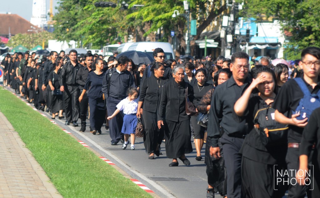 ประชาชนทั้งจากต่างจังหวัดและเขตปริมณฑลเข้าคิวรอตั้งแต่เช้าตรู่ เพื่อกราบสักการะพระบรมศพ พระบาทสมเด็จพระปรมินทรมหาภูมิพลอดุลยเดช ณ พระที่นั่งดุสิตมหาปราสาท ในพระบรมมหาราชวัง ถึงแม้อากาศจะร้อนสักเพียงใดก็ตาม