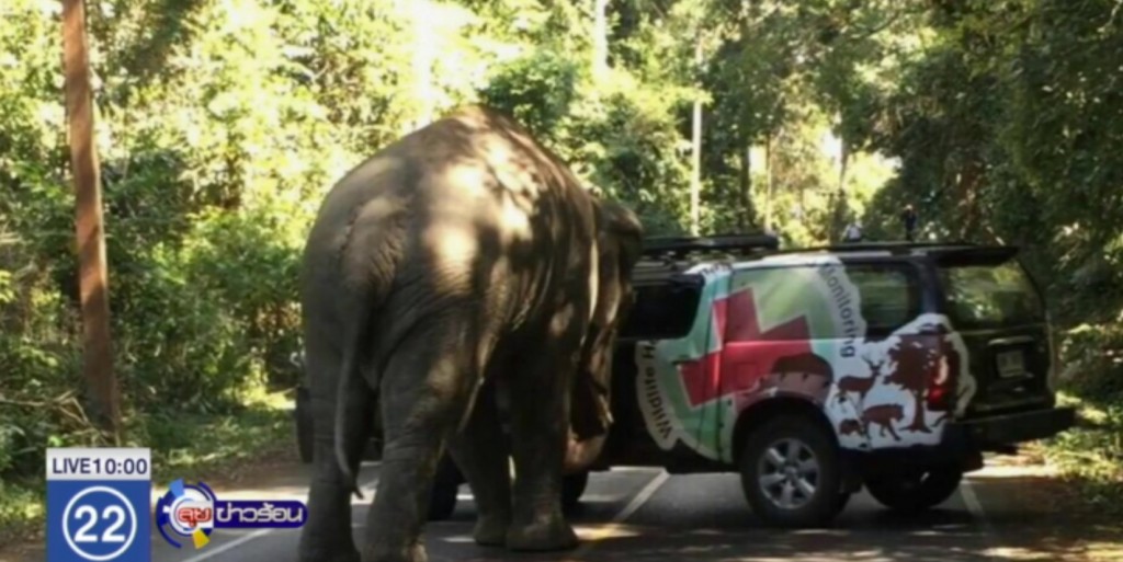 ล่าสุดช้างป่าที่เขาใหญ่มีอาการหงุดหงิดและเดินหากินใกล้กับจุดกางเต้นท์ของนักท่องเที่ยวบริเวณเส้นทางศึกษาธรรมชาติน้ำตกเหวสุวัต เจ้าหน้าที่จึงนำรถเข้าผลักดันช้าง แต่ช้างไม่ยอมกลับเข้าป่าจึงเกิดอาการหงุดหงิดเข้าปะทะรถเจ้าหน้าที่ ทำให้ประตูด้านซ้ายและขวาบุบ กระจกแตกหัก แต่โชคดีเจ้าหน้าที่ไม่ได้รับบาดเจ็บ