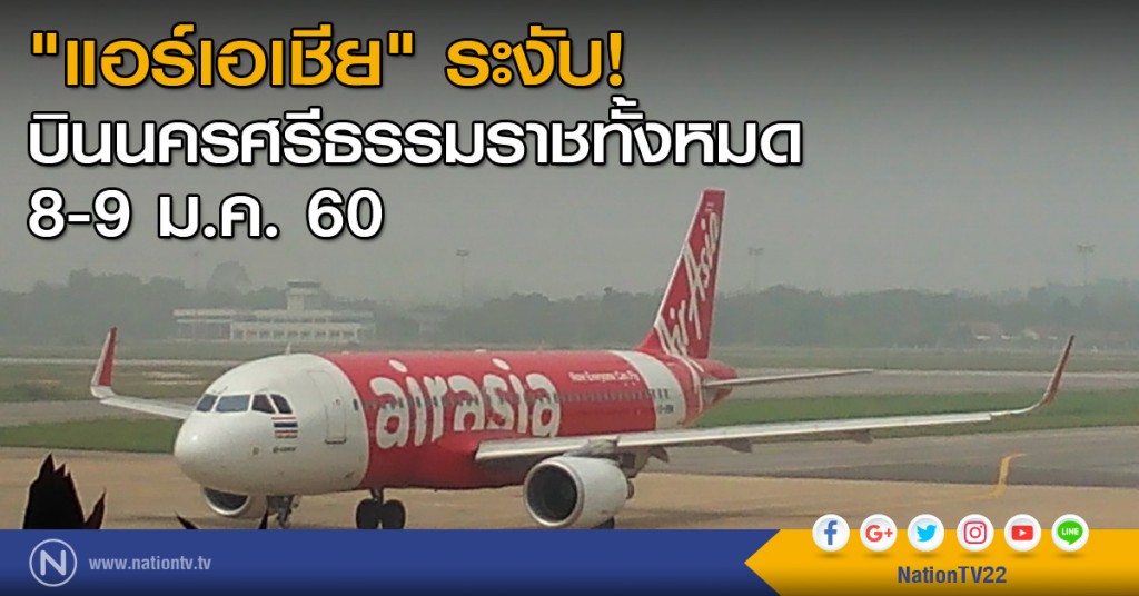 ฝ่ายสื่อสารองค์กร สายการบินแอร์เอเชีย แจ้งว่า ตามที่ท่าอากาศยานนครศรีธรรมราชประกาศปิดชั่วคราว เพิ่มเติมในวันที่ 8-9 ม.ค.60 เนื่องจากผลกระทบจากสถานการณ์น้ำท่วม สายการบินแอร์เอเชียจึงขอประกาศระงับการให้บริการในเส้นทางกรุงเทพ-นครศรีธรรมราช ในวันดังกล่าว โดยมีเที่ยวบินที่ได้รับผกระทบดังนี้