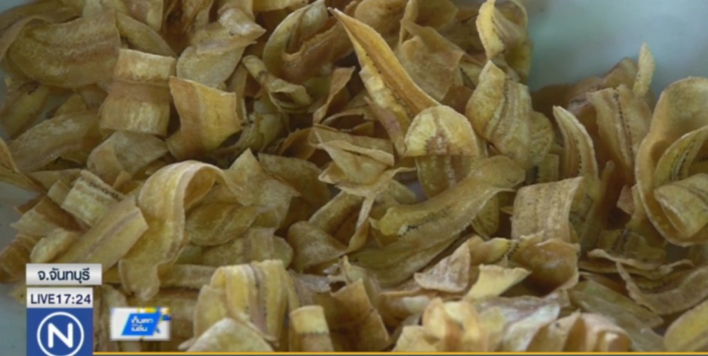 ขณะที่ ชาวบ้านอีกกลุ่มจะช่วยกันใช้มีดคมกริบทำการปลอกเปลือกกล้วยและนำเนื้อกล้วยออกมาใส่ถาดทยอยส่งให้อีกกลุ่มทำการฝานด้วยมีดคู่ที่ไวเหมือเครื่องจักรกล