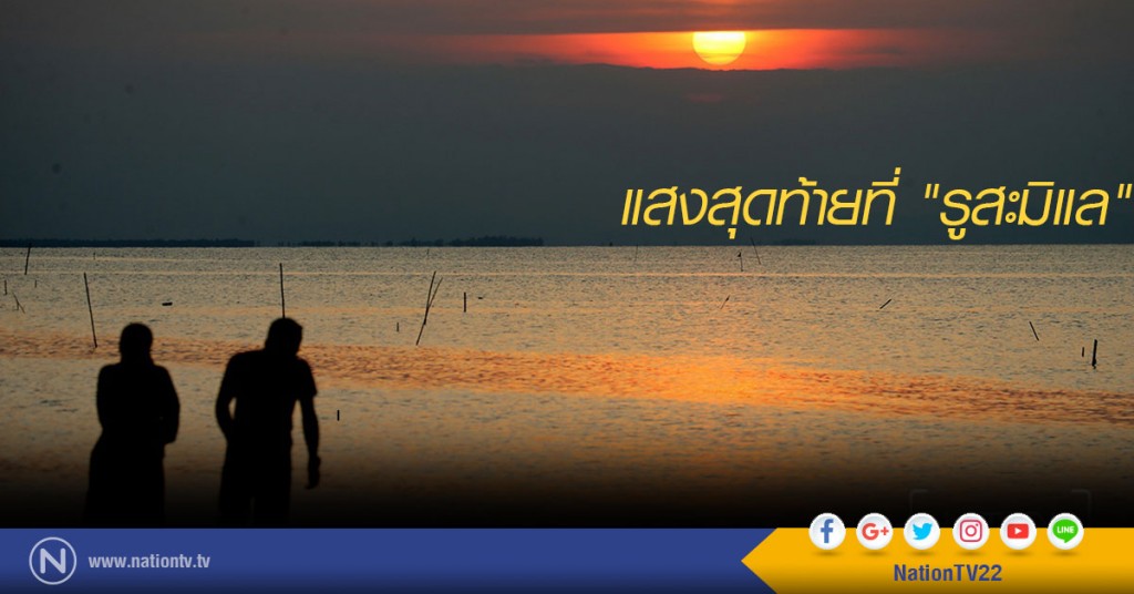 หาดรูสะมิแล อ.เมือง จ.ปัตตานี ชายทะเลที่ติดกับตัวเมืองมากที่สุด ทุกเย็นจะมีประชาชนนิยมเดินทางพักผ่อนบนสันเขื่อนกั้นคลื่นปากอ่าวปัตตานี เพื่อชมพระอาทิตย์ลับเหลี่ยมเขา แม้ยามนี้ท้องฟ้ายังคงมีเมฆปกคลุมเป็นจำนวนมาก แต่ก็ยังคงความสวยงามระยิบระยับตา ยามแสงสุดท้ายกระทบผืนน้ำก่อนความมืดจะมาเยือน