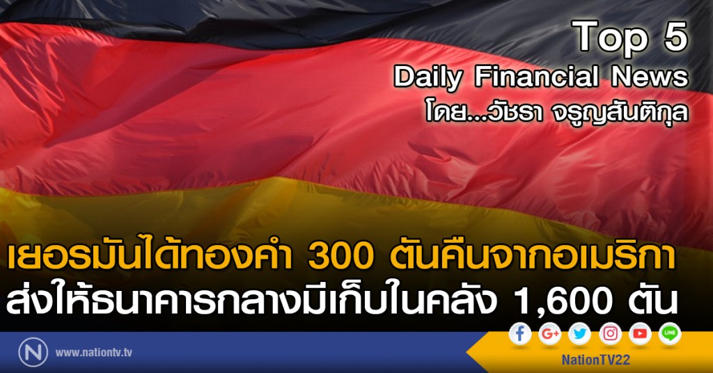 1.หลังจากที่ธนาคารกลางเยอรมัน หรือบุนเดสแบงก์ ประกาศแผนทวงคืนทองที่ฝากไว้ในต่างประเทศโดยเฉพาะทองคำที่ฝากไว้กับธนาคารกลางสหรัฐ (เฟด) จำนวน 300 ตัน และธนาคารฝรั่งเศสจำนวน 374 ตัน รวมทั้งสิ้น 674 ตันตั้งแต่ปี 2013 โดยมีสัญญาว่ามีการทยอยคืนจนครบภายในปี 2020