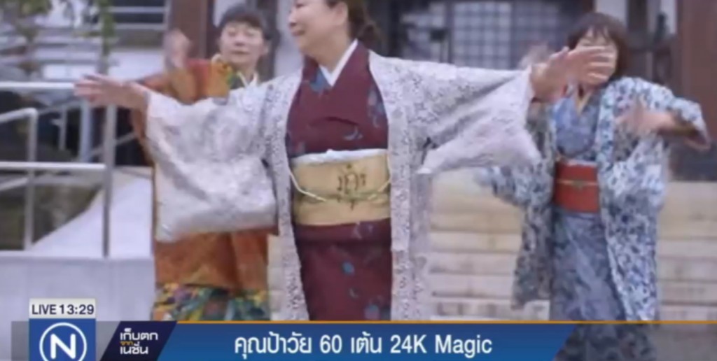 ใครดูคลิปวีดีโอนี้แล้วก็ไม่อยากจะเชื่อว่า 3 รุ่นใหญ่ที่ออกมาสวมชุดกิโมโนแล้วออกมาเต้นประกอบเพลง 24K Magic ของ Bruno Mars จะมีอายุไม่ต่ำกว่า 60 กันสักคน เพราะด้วยท่วงท่าการเต้นที่ทะมัดทะแมง และเคลื่อนไหวไปตามจังหวะได้อย่างพริ้วไหวเสียขนาดนี้ จึงไม่น่าแปลกใจ ที่ปัจจุบันนี้คลิปนี้จะถูกแชร์กระหน่ำในโลกออนไลน์ และมียอดเข้าชมกว่า 1 ล้าน 3 แสนวิว และคุณป้าทั้ง 3 ก็ยังกลายเป็นไอดอลของนักเต้นหลายคนไปแล้ว