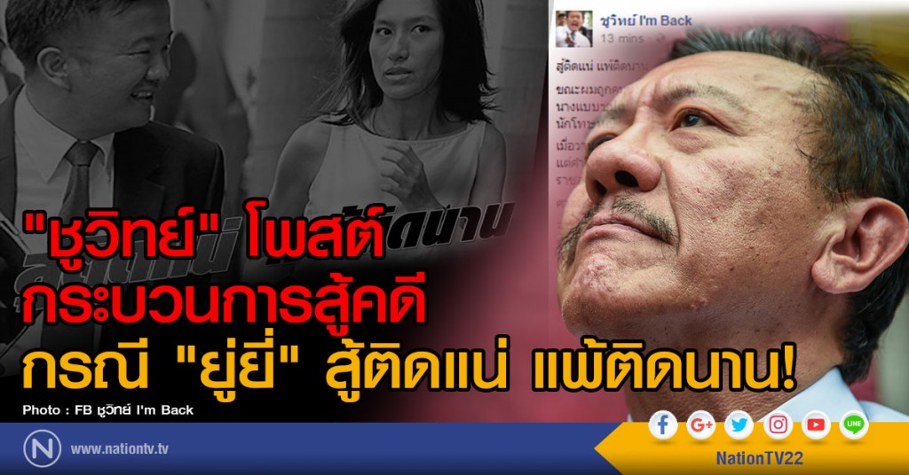 ชูวิทย์ กมลวิศิษฎ์ อดีตนัการเมืองดัง โพสต์ข้อความผ่านเฟสบุ๊ค "ชูวิทย์ I'm Back" กรณีคดีความของนางแบบสาว "ยู่ยี่" โดยมีข้อความว่า..