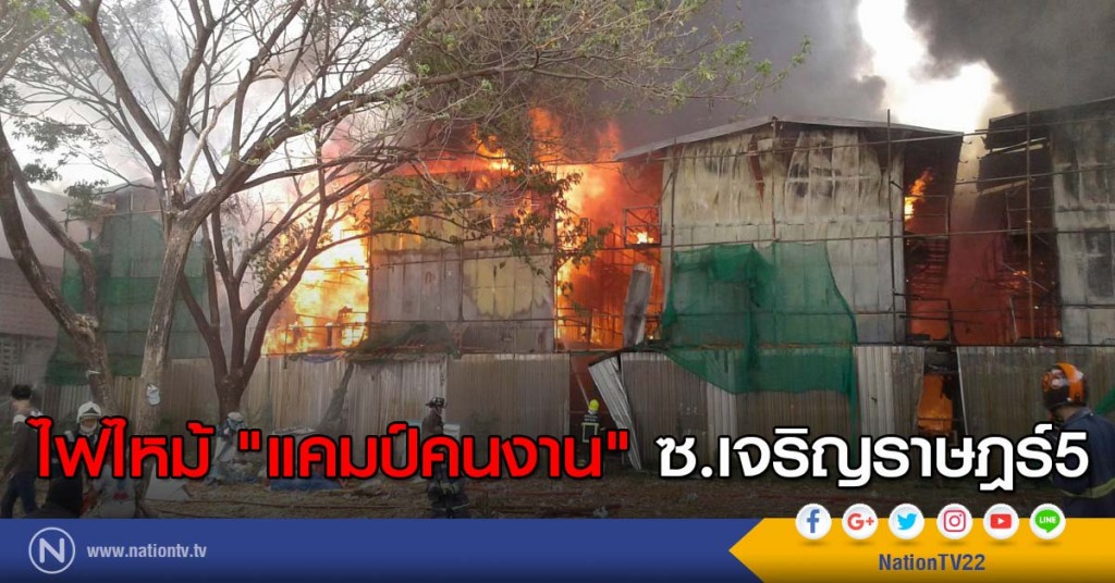 ภาพที่เกิดเหตุเพลิงไหม้แคมป์พักคนงาน ซอยเจริญราษฎร์ 5 @ขอบคุณภาพจากคุณสุรเชษฐ์