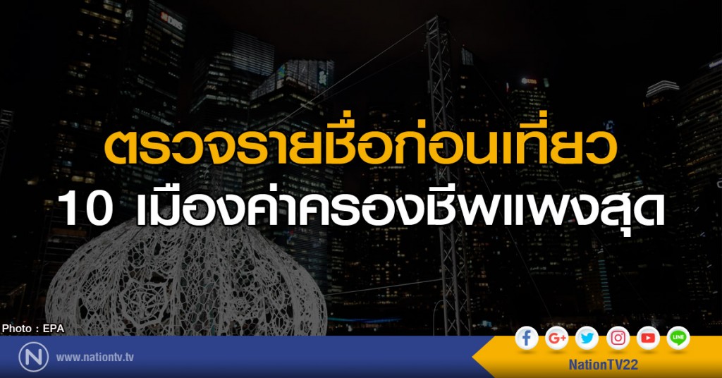 10 เมิองค่าครองชีพแพงสุดในโลก1.สิงคโปร์2.ฮ่องกง3.ซูริค สวิตเซอร์แลนด์4.โตเกียว ญี่ปุ่น5.โอซากา ญี่ปุ่น6.โซล เกาหลีใต้7.เจนีวา สวิตเซอร์แลนด์8.ปารีส ฝรั่งเศส9.นิวยอร์ก สหรัฐ10.โคเปนเฮเกน เดนมาร์ก