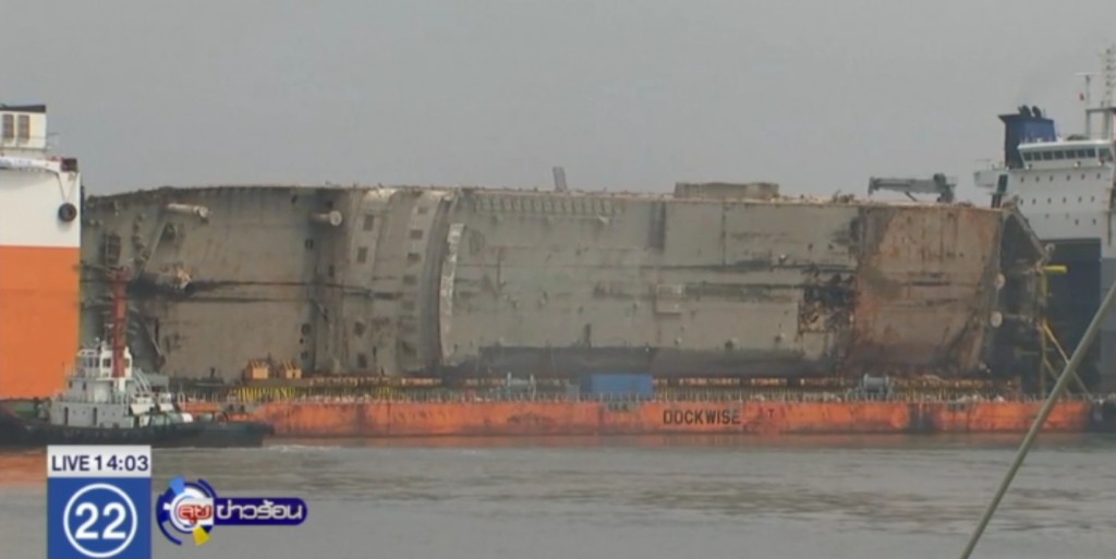 เรือกึ่่งดำนำที่บรรทุกซากเรือเซวอล เข้าเทียบท่าที่ท่าเรือม็อกโปเมื่อ 13.15 น.วันนี้ตามเวลาท้องถิ่น หลังปฏิบัติการกู้ซากเรือจากใต้ทะเลลึก 44 เมตรนอกชายฝั่งเกาะจินโดเริ่มขึ้นเมื่อหนึ่งสัปดาห์ที่แล้ว และเรือกึ่งดำน้ำแบกซากเรือเซวอลออกจากจุดที่เรือจมเมื่อ 7.00 น.วันนี้เป็นระยะทาง 105 กมจนถึงท่าเรือ
