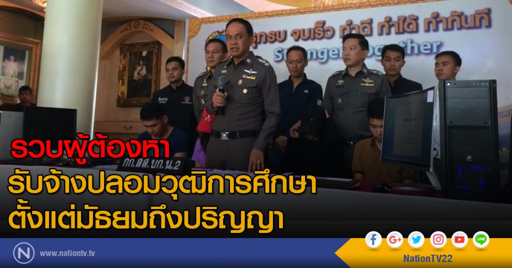 กลุ่มแรกคือนายกิตติวัฒน์ ชาญวิมลวัฒน์ อายุ 23ปี อยู่บ้านเลขที่ 114/1 หมู่3 ต.ในเมือง อ.เมือง จ.สุรินทร์และ น.ส.จุฑาวดี ศิริสุขสวัสดิ์ อายุ 21 ปี อยู่บ้านเลขที่ 20/1 หมู่ 3 ต.หนองรี อ.เมือง จ.ชลบุรี ตามหมายจับศาลอาญาที่ 874,875/2560 ลงวันที่7 เมษายน 2560 พร้อมของกลาง หนังสือรับรองวุฒิการศึกษาปลอม จำนวน18 แผ่น ,ภาพถ่ายของผู้ชอทำวุฒิการศึกษาปลอม ,ตราโรงเรียนและมหาวิทยาลัยต่างๆที่ใช้ในการปลอมเอกสาร 19 ตรา , สมุทบัญชีธนาคารที่ใช้ในการรับโอนเงินจากลูกค้าและคอมพิวเตอร์ เครื่องพิมพ์ พร้อมอุปกรณ์ส่วนควบต่างๆที่ใช้ในการปลอมเอกสาร สามารถจับกุมได้ในบ้านเลขที่ 303 หมู่6 ต.นอกเมือง อ.เมือง จ.สุรินทร์