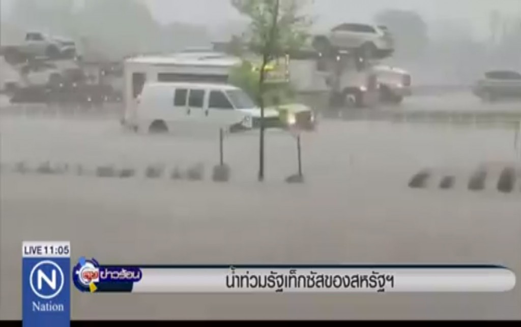 เกิดพายุฝนฟ้าคะนองและน้ำท่วมฉับพลันในรัฐเท็กซัสของสหรัฐฯ ทำให้ถนนหลายสายถูกปิดและโรงเรียนยกเลิกกาเรียนการสอน ภาพที่่ถ่ายโดยโทรศัพท์มือถือ แสดงให้เห็นรถยนต์วิ่งฝ่ากระแสน้ำท่วมสูง บริเวณร้านอาหารแห่งหนึ่งในเมืองซาน มาร์คอสขณะที่รถยนต์อีกหลายคัน พยายามแล่นฝ่ากระแสน้ำที่บริเวณสี่แยก