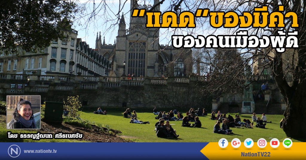 เมืองบาธที่เราอยู่ แม้จะเป็นเมืองเล็กๆ แต่ก็มีสวน มีพื้นที่สีเขียวอยู่หลายที่ ให้คนได้ออกมาพักผ่อน ซึ่งเป็นสิ่งที่เราชอบมากที่นี่ กับพื้นที่สีเขียวที่ให้เราได้ผ่อนคลาย การได้เห็นว่าในเมืองที่เราอยู่มีพื้นที่สีเขียวหลายแห่ง เราว่ามันเป็นการสะท้อนถึงการให้ความสำคัญของพื้นที่สีเขียวของคนที่นี่ ต้นไม้ต้นใหญ่ๆยังคงมีอยู่อย่างมากมาย เป็นบรรยากาศที่สวยงามและร่มรื่น