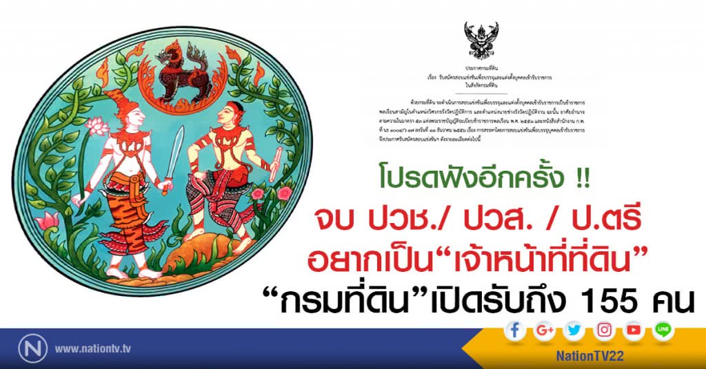 สำหรับตำแหน่งที่ กรมที่ดิน จะเปิดรับสมัครสอบแข่งขันเพื่อบรรจุและแต่งตั้งบุคคลเข้ารับราชการในสังกัดกรมที่ดิน สำหรับตำแหน่งที่รับสมัครมีดังนี้
