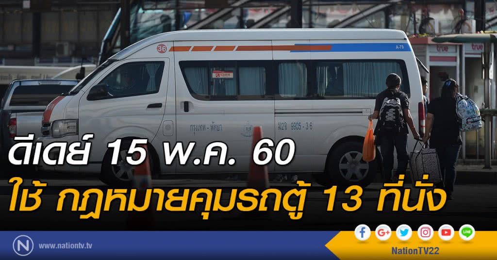 กรมการขนส่งทางบก ดีเดย์ 15 พฤษภาคมนี้ เริ่มบังคับใช้กฎหมายห้ามที่นั่งรถตู้โดยสารเกิน 13 ที่และต้องจัดวางรูปแบบที่นั่งแถวหลังสุดให้มีช่องทางเดิน