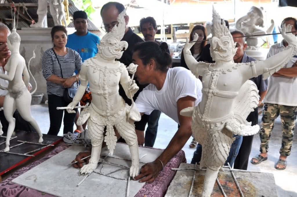 สำนักช่างสิบหมู่ กรมศิลปากร นำโดย นายสมควร อุ่มตระกูล ผู้อำนวยการสำนักช่างสิบหมู่ นายก่อเกียรติ ทองผุด นายช่างศิลปกรรมชำนาญการ สำนักสถาปัตยกรรม กรมศิลปากร ผู้ออกแบบพระเมรุมาศทรงบุษบก 9 ยอด ในงานพระราชพิธีถวายพระเพลิงพระบรมศพพระบาทสมเด็จพระปรมินทรมหาภูมิพลอดุลยเดช รัชกาลที่ 9 นายสุดสาคร ชายเสม ที่ปรึกษาคณะกรรมการฝ่ายจัดสร้างพระเมรุมาศ พร้อมด้วยนายช่างศิลปกรรม สำนักช่างสิบหมู่ กรมศิลปากร เดินทางมาตรวจติดตามความคืบหน้าการจัดสร้างสัตว์หิมพานต์ประกอบพระเมรุมาศ โดยมี นายสมชาย บุญประเสริฐ ช่างปูนปั้นเมืองเพชรวัย 43 ปี และคณะช่างปูนปั้นเพชรบุรีร่วมให้การต้อนรับ พร้อมนำผลงานการปั้นสัตว์หิมพานต์ที่ปั้นแล้วเสร็จสมบูรณ์และที่ขึ้นโครงสร้างจำนวนประมาณ 50 ชิ้นงาน จัดแสดงให้คณะกรรมการได้ตรวจพิจารณา