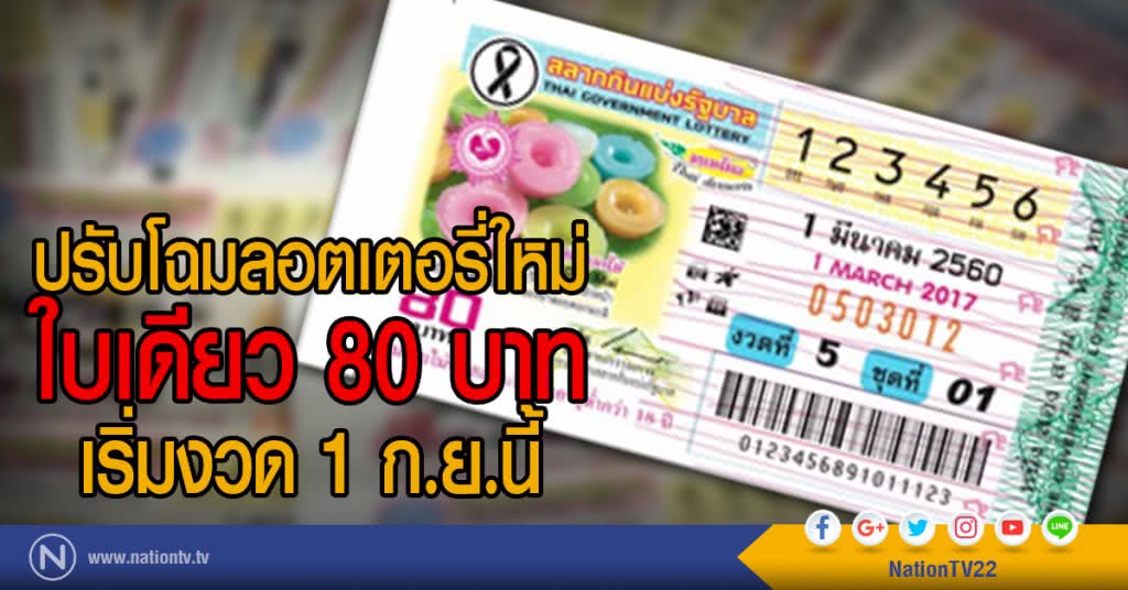 ผู้อำนวยการสำนักงานสลากกินแบ่งรัฐบาล พลตรี ฉลองรัฐ นาคอาทิตย์ บอกว่า จากเดิมที่สลากกินแบ่งรัฐบาลเป็นรูปแบบคู่ ทางสำนักงานสลากกินแบ่งฯ เตรียมที่จะปรับปรุงเพื่อความสะดวก มีขนาดเหมาะในการพกพา แต่ป้องกันการสับสนจากรูปแบบเดิม โดยจะปรับปรุงเป็นแบบใบเดียว เนื้อกระดาษจะสังเกตง่ายขึ้น ทั้งลายน้ำรูปนกวายุภักษ์ที่จะเห็นชัดเจน สังเกตได้ง่าย และเพิ่มทูดี บาร์โค้ด (2D barcode) ที่เป็นประโยชน์ต่อการตรวจสอบหมายเลขสลาก โดยรูปแบบใหม่จะเริ่มงวดแรก ในเดือนกันยายนนี้ จำนวน 71 ล้านฉบับ