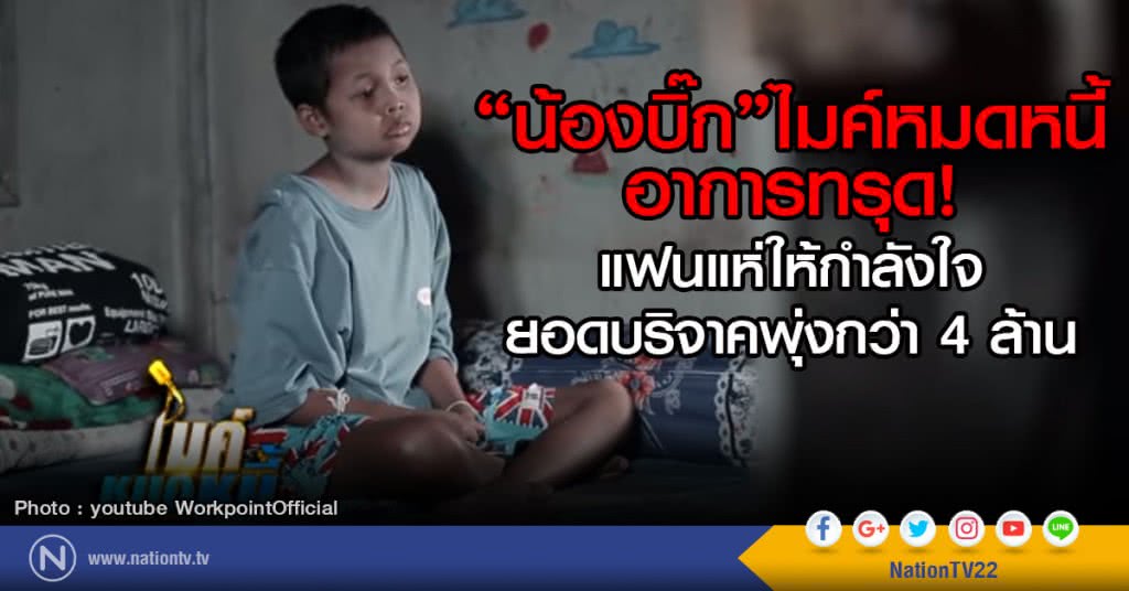 น้องบิ๊ก ไมค์หมดหนี้ อาการทรุด! แฟนแห่ให้กำลังใจยอดบริจาคพุ่งกว่า 4 ล้าน