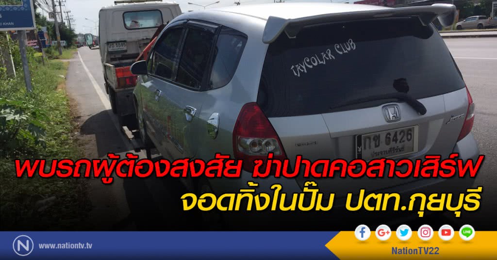 ตำรวจเข้าตรวจสอบ รถฮอนด้าแจส สีบอร์น หมายเลขทะเบียน กข.6424 ประจวบคีรีขันธ์ ที่จอดทิ้งข้างทางใกล้กัลปั๊ม ปตท.ในพื้นที่ อ.กุยบุรี เพื่อหากหลักฐานของคนร้ายทีก่อเหตุหาตกกรรมสาวเสริฟวัย 25 ปี
