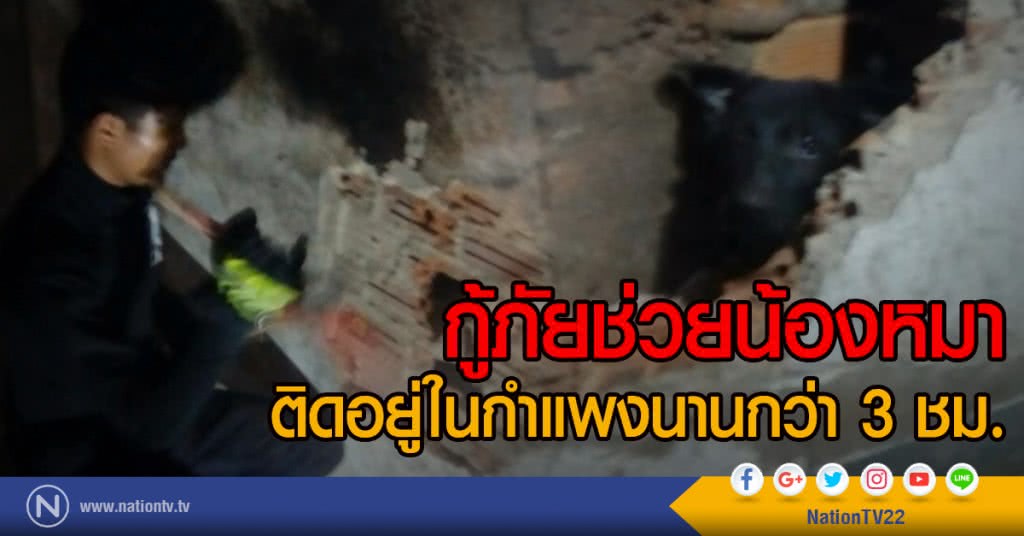 ทางเจ้าหน้าที่กู้ภัยสว่างเมฆาตะกั่วป่า จึงได้นำทีมกู้ภัยฯ พร้อมอุปกรณ์เครื่องมือออกไปช่วยเหลือทันที เมื่อเจ้าหน้าที่กู้ภัยฯ ไปถึงที่เกิดเหตุพบว่า สุนัขตัวดังกล่าวอยู่ในสภาพยืนอยู่ ลำตัวและใบหน้าติดกับกำแพงบ้านทั้ง 2 หลัง ไม่สามารถขยับไปไหนได้ ทางเจ้าหน้าที่จึงตัดสินใจใช้ค้อนขนาดใหญ่ทุบกำแพงจากข้างในตัวบ้านจนเป็นโพรงนานกว่า 3 ชั่วโมง ก่อนที่จะช่วยกันดึงเจ้าสุนัขออกมาได้สำเร็จ