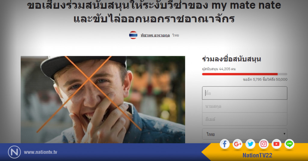 ล่าชื่อไล่ "My Mate Nate" ออกนอกประเทศ