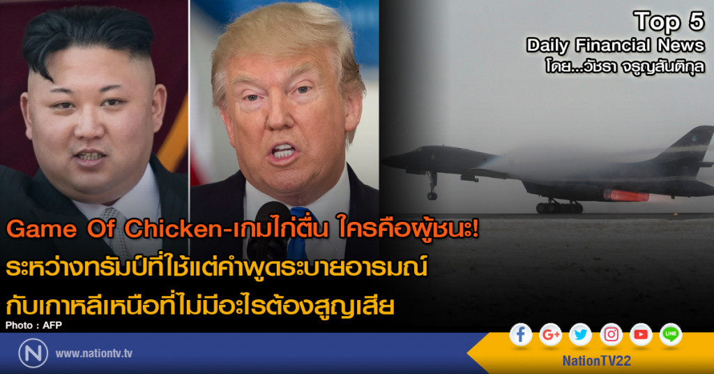 หลังจากตลอดสัปดาห์ที่ผ่านมา เกิดสงครามปากที่เป็นวิวาทะกันของ 2 ผู้นำวอชิงตันและผู้นำเปียงยาง ซึ่งถูกมองว่าไม่แตกต่างจาก Game Of Chicken หรือเกมไก่ตื่น ที่ทำให้โลกเกิดช่องว่างมากขึ้นต่อความขัดแย้งในคาบสมุทรเกาหลี ซึ่งทำให้กลายเป็น Hotspot ที่ร้อนแรงอีกจุดหนึ่งของความเสี่ยงภูมิรัฐศาสตร์โลก