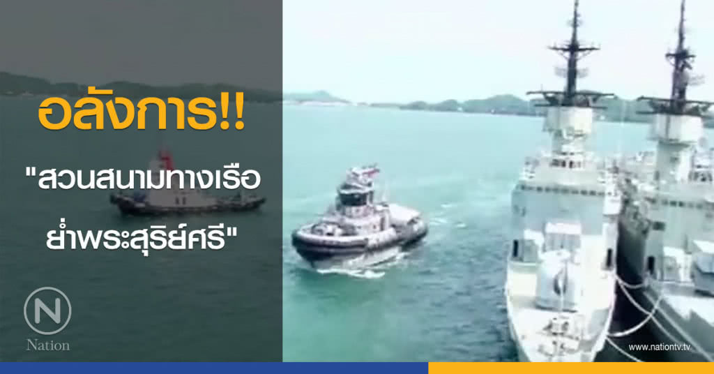 จากนั้น ผู้บัญชาการทหารเรือและคณะ เดินทางโดยเฮลิคอปเตอร์ไปยังเรือหลวงจักรีนฤเบศร ซึ่งจอดลอยลำอยู่กลางอ่าวสัตหีบ เพื่อเป็นประธานในพิธีสวนสนามทางเรือ โดยเรือหลวงปิ่นเกล้า ยิงสลุตจำนวน 19 นัด ทั้งนี้ ผู้บัญชาการทหารเรือ ได้กล่าวอำลาชีวิตราชการ และรับมอบของที่ระลึกจากผู้บัญชาการกองเรือยุทธการ ก่อนเดินทางกลับ