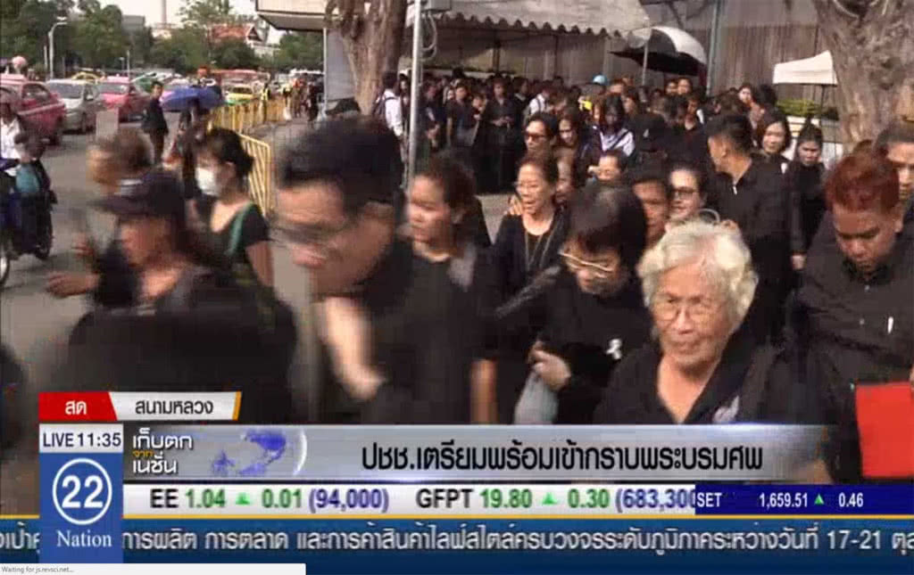 เป็น 5 วัน ที่บีบหัวใจประชาชนคนไทย เพราะจะเป็น 5 วันสุดท้ายที่ประชาชนได้มีโอกาสใกล้ชิดพระบาทสมเด็จพระปรมินทรมหาภูมิพลอดุลยเดช ทำให้วันนี้มีประชาชนมารอกราบพระบรมศพจำนวนมาก ซึ่งในพื้นที่สนามหลวงขณะนี้ มียอดประชาชนสะสมกว่า 3หมื่น6พันคน ซึ่งแต่ละคนก็มีการเตรียมความพร้อม เพื่อรับกับสภาพอากาศที่ค่อนข้างร้อนกว่า 30 องศา