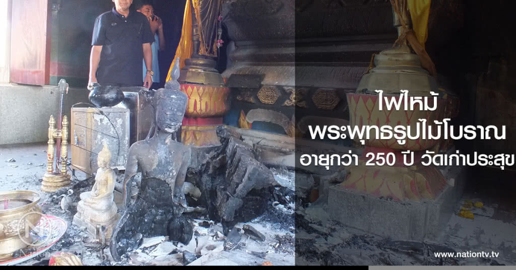 ไฟไหม้พระพุทธรูปไม้โบราณ อายุกว่า 250 ปี วัดเก่าประสุข