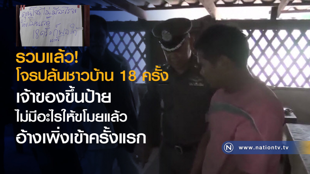 ที่บ้านถูกคนร้ายเข้าขโมยทรัพย์สินไปแล้วทั้งหมด 18 ครั้ง อยากให้ตำรวจช่วยจับกุมคนร้ายให้ด้วย โดยล่าสุดได้ขโมยเครื่องพ่นยาฆ่าแมลง เสื้อ 10 ตัว และกางเกงยีนส์ 5 ตัว จึงได้ปิดป้ายฝากถึงคุณโจร ไม่มีอะไรจะให้ขโมยแล้ว 18 ครั้งก็พอได้แล้ว หลังจากตำรวจ สภ.เมืองชลบุรีได้รับแจ้ง จึงได้ทำการสืบสวนสอบสวนและสามารถจับกุมตัวนายเอกราช เนื่องจำนงค์ อายุ 37 ปี ผู้ต้องหาซึ่งได้เข้าไปลักทรัพย์ที่บ้านหลังดังกล่าว