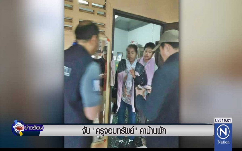 ตำรวจได้นำหมายศาลเข้าจับกุมนางจอมทรัพย์ แสนเมืองโคตร หรือ ครูอ๋อย ที่ถูกแจ้งความดำเนินคดีในข้อหานำสืบและแสดงหลักฐานอันเป็นเท็จต่อศาล ได้ที่บ้านเลขที่126 หมู่ 5 บ.ม่วงไข่ ต.ด่านม่วงคำ อ.โคกศรีสุพรรณ จ.สกลนคร และได้นำตัวครูจอมทรัพย์ มาบังสถานีตำรวจภูธร อ.โคกศรีสุพรรณ เพื่อนำตัวส่งต่อไปยังกองบังคับการตำรวจภูธร จ.นครพนม ในช่วงสายของวันนี้